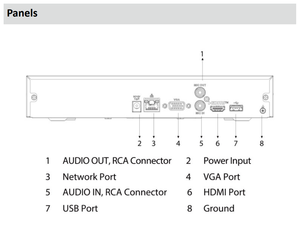 این NVR مجهز به دو خروجی تصویری مستقل HDMI و VGA میباشد که امکان نمایش همزمان یا جداگانه تصاویر را فراهم میسازد. خروجی HDMI از رزولوشن 4K (3840×2160) پشتیبانی میکند که نمایش جزئیات تصاویر دوربینهای با رزولوشن بالا را ممکن میسازد. سیستم چندصفحهای دستگاه اجازه میدهد تا تصاویر 1، 4، 8، 9 یا 16 دوربین به صورت همزمان مشاهده شوند.