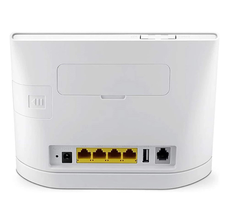 در قسمت پشتی مودم، دکمههای کاربردی مانند پاور برای روشن و خاموش کردن دستگاه، WPS برای اتصال سریع بدون نیاز به رمز عبور، و ریست برای بازگشت به تنظیمات کارخانه قرار گرفتهاند. همچنین پورتهای ارتباطی شامل دو پورت LAN با سرعت 10/100 Mbps، یک پورت تلفن RJ11، ورودی منبع تغذیه DC، اسلات سیمکارت نانو و اسلات حافظه microSD تا ظرفیت ۳۲ گیگابایت، امکان اتصال گسترده و انعطافپذیر را فراهم میکنند.