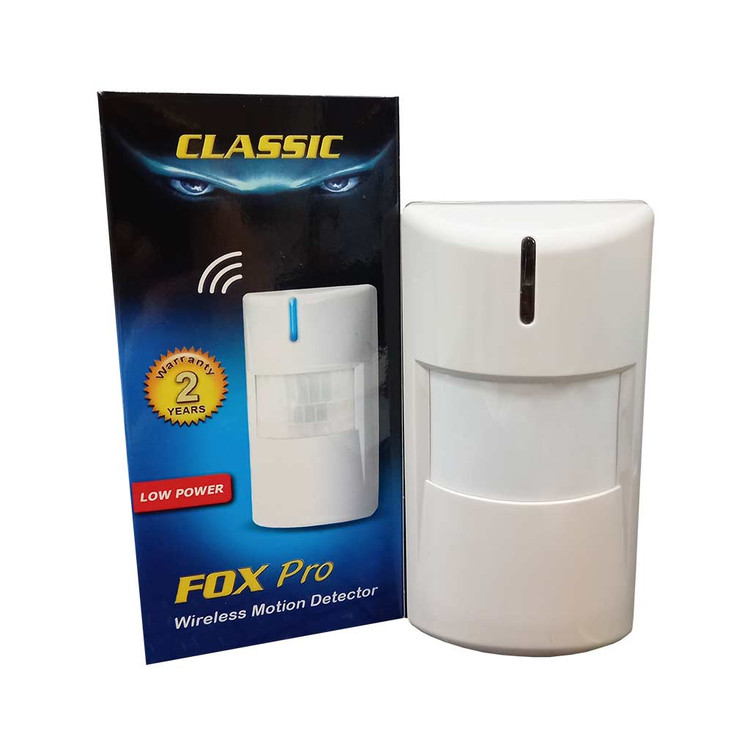 چشم بیسیم کلاسیک FOX Pro آشکارساز حرکتی مادون قرمز بیسیم، حرکت افراد در محیط را بدون نیاز به سیمکشی به سیستم حفاظتی اطلاع میدهد. استفاده از سنسور مرغوب و طراحی پیشرفته باعث شده کلاسیک FOX Pro حساسیت و دقت بالایی داشته باشد و بر خلاف بیشتر چشمهای بیسیم موجود در بازار، برد رادیویی خود را در طول عمر مفید باتری حفظ کند.