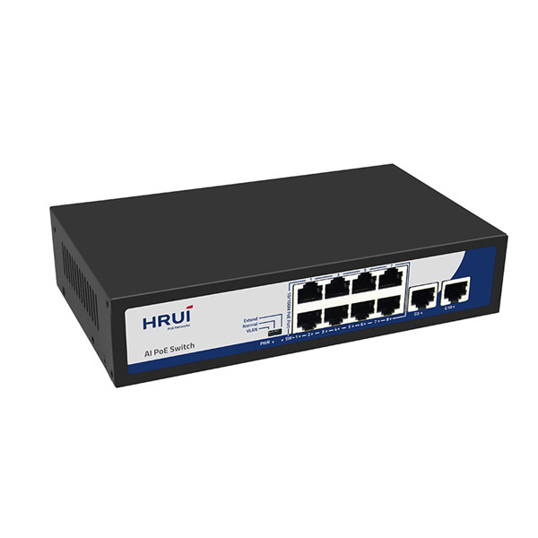 این سوئیچ دارای 8پورت 10/100 است. همچنین دو پورت آپلینک 10/100/1000 نیز از سوی کمپانی HRUI بر روی این سوئیچ قرار گرفته شده است.