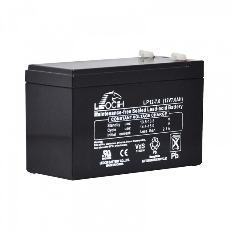 باتری 12 ولت 7 امپر لئوچ یک باتری از نوع سیلد لید اسید بوده و در دسته باتریهای مصارف خانگی و صنعتی کیفیت قابل قبولی را ارائه میدهد . از این نوع باتری در انواع دستگاههای یو پی اس و سیستم های برق اضطراری ، دزدگیر اماکن ، دوربین های مدار بسته ، تجهیزات پزشکی ، سیستمهای برق خورشیدی کوچک ، سیستمهای نجات اضطراری اسانسور ، ماشین شارژی کودک و بسیاری موارد دیگر استفاده میشود .