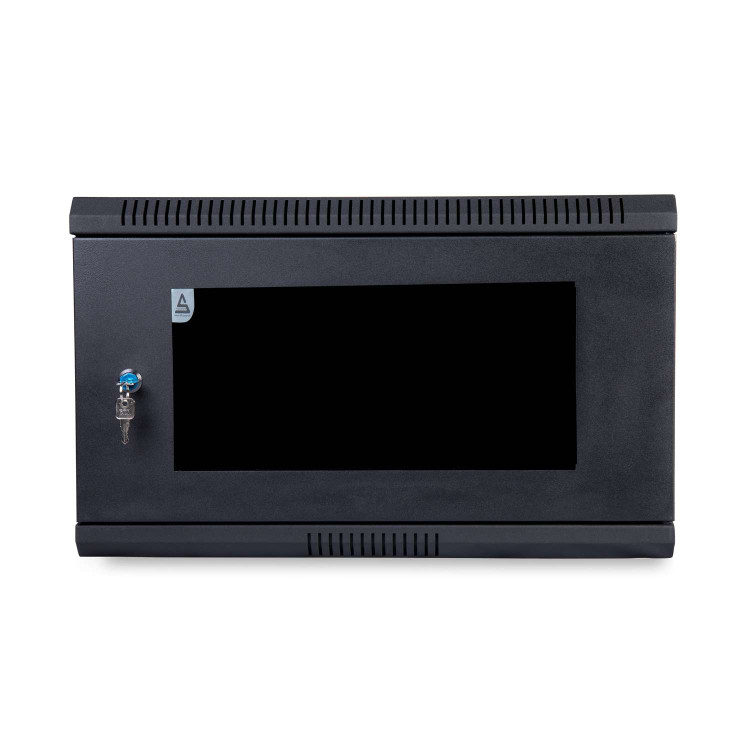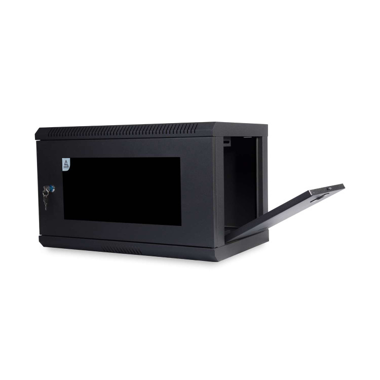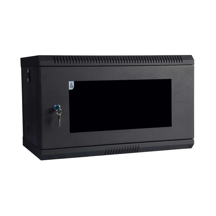 رک دیواری ۶ یونیت معمولا از پشت به دیوار پیچ می شود و اگر تجهیزات سنگین باشند بر زیر آن پایه قرار می گیرد.